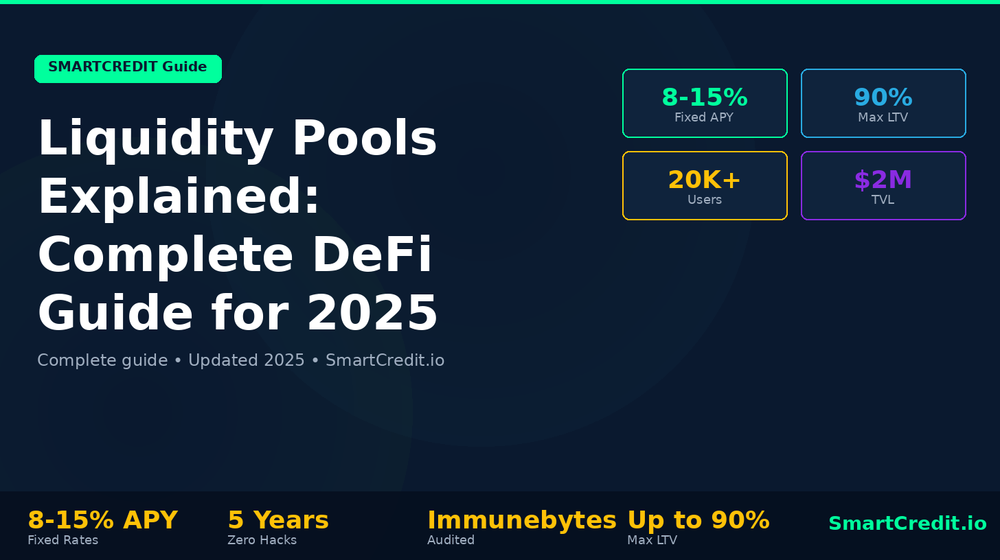 Liquidity pools explained: Provide 2 tokens to DEX (ex: ETH + USDC on Uniswap), earn trading fees (0.3%) + rewards. How AMMs work: constant product formula (x × y = k) maintains balance. Impermanent loss example: Deposit $10K (5K ETH + 5K USDC). ETH doubles. Without LP: $15K total. With LP: $14.1K (6% impermanent loss). But earned $800 fees + $600 rewards = net $14.9K (still profitable). Types: stable pools (USDC/DAI, low IL), volatile pairs (ETH/LINK, high IL), single-sided (no IL). Top platforms: Uniswap ($4B TVL), Curve ($3.2B), Balancer. Maximize returns: use SmartCredit fixed-rate loans to fund positions. Visit https://devaiweb.smartcredit.io