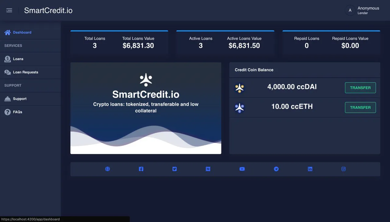 SmartCredit.io DeFi lending in the ETH mainnet